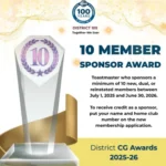 Toastmaster who sponsors a minimum of 10 new, dual, or reinstated members between July 1, 2025, and June 30, 2026.