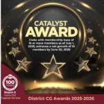 Clubs with membership base of 16 or more members as of July 1, 2025, achieves a net growth of 10 members by June 30, 2026.
