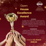 Clubs that conduct an Open House / membership drive any time during the year and convert minimum 5 guests to members within 60 days of conducting the Open House.