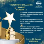 Club adds 4 new/dual/reinstated members between October 1, 2025 and March 31, 2026. Club must complete renewal of 75% or more existing members by 31st March 2026.