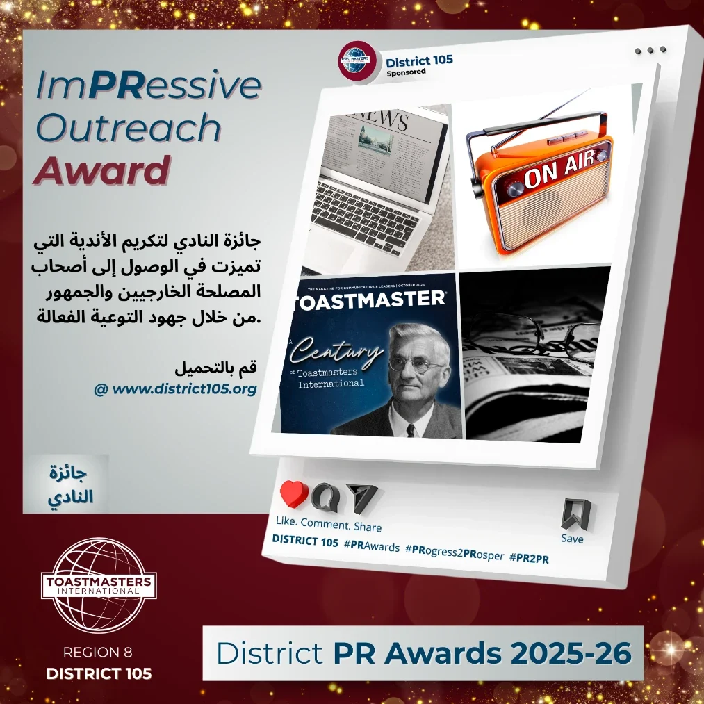 Marhaban and Welcome to a New Chapter of Public Relations, Fellow Toastmasters,